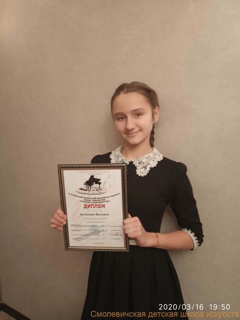 Учащиеся ГУО «Смолевичская ДШИ»: Котковец Алина, учитель Куликова Татьяна Александровна, получила диплом 1 степени, Козлова Эмилия — диплом 3 степени. Розум Виктория , учитель Пётух Дарья Петровна — диплом 2 степени и Цвилик Стас дипломантом конкурса. Все ребята достойно представили свою школу .