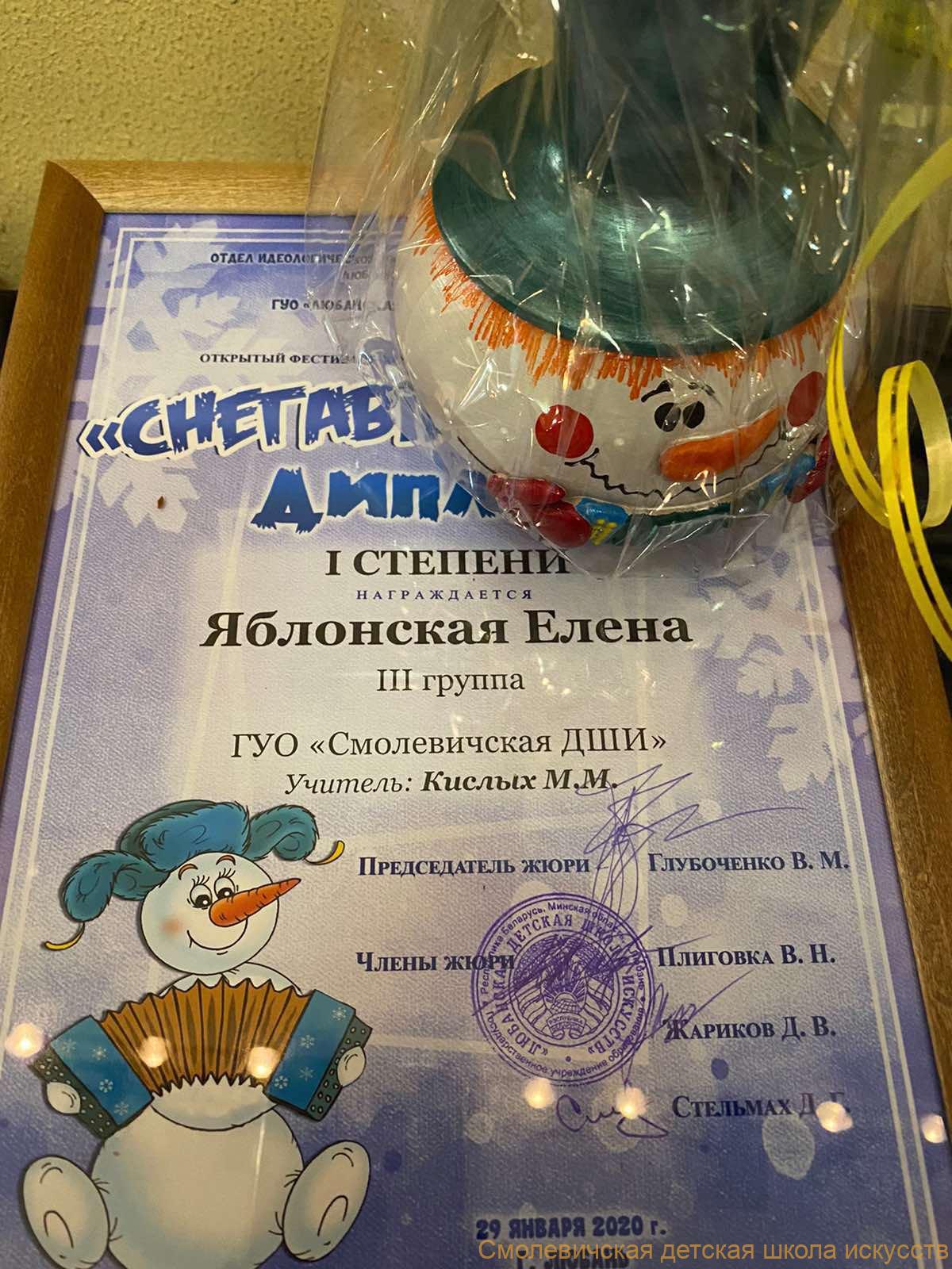 Учащиеся ГУО «Смолевичская ДШИ», класс аккордеона Кислых Марианны Михайловны Смольский Михаил стал лауреатом ІІ степени, Яблонская Елена — лауреатом ІІІ степени этого престижного конкурса.