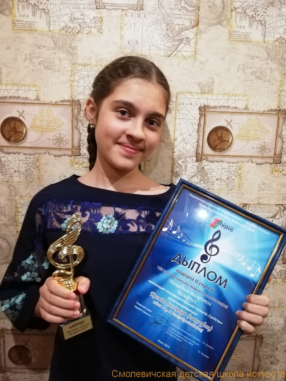 В этот году учащаяся ГУО «Смолевичская ДШИ» Селицкая Ксения, учитель Новинский Юрий Александрович, концертмейстер Шумилова Елена Григорьевна, покорила авторитетное жюри своей игрой и стала лауреатом ІІ степени.