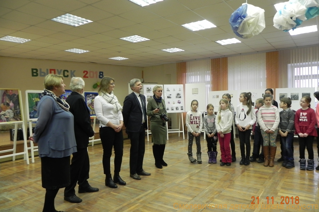 21.11.2018г. в актовом зале Детской художественной школы искусств г.Жодино состоялось открытие выставок творческих работ учащихся ГУО «Смолевичская детская школа искусств» (художественное отделение), ГУО «Детская художественная школа искусств №1 им. В.К. Цвирко г.Минска», частная общеобразовательная школа изящных искусств г.Влоцлавек (Польша).